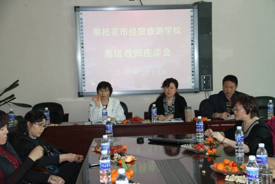 首先,范晓红校长介绍了学校创建国家中等职业教育改革发展示范学校和四川省中等职业学校课程改革各项工作的开展情况,对学校发展思路、管理理念和组建职教集团情况,教师职称改革情况,学校绩效工资情况等中心工作和热点问题为高级教师们做了具体介绍。她鼓励教师认真思考、勤奋工作,积极地投入到学校“创示”和“课程改革”中去,为年轻教师树立表率,引领学校教育教学工作。