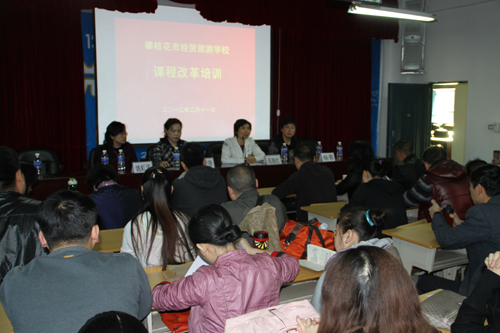 为加快课程改革进度,配合我校创建国家中等职业教育改革发展示范学校, 2月11日,我校特邀了成都航空职业技术学院课程改革专家李学锋、姚虹华、杨蓉三位教授对全校教师进行了有关职业教育课程改革的培训。