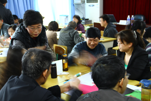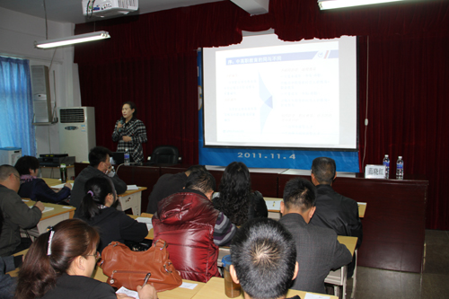 杨蓉教授做了题为《行动导向教学法及其体验》的讲座,她首先介绍了行动导向教学法的内容,然后模拟课堂环境向老师们演示了实用性、操作性极强的引导文教学法和项目教学法的具体教学过程。