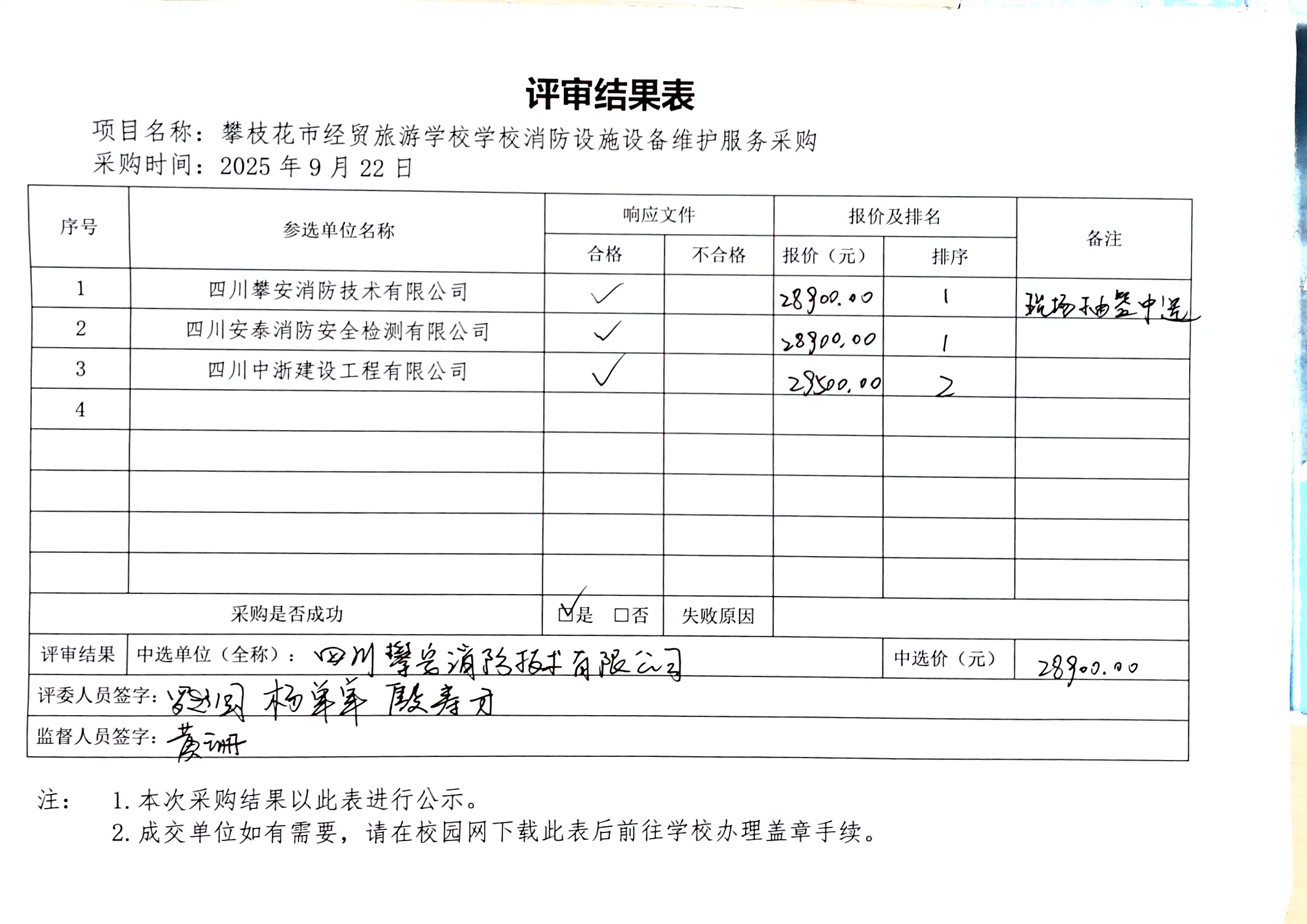 攀枝花市经贸旅游学校消防设施设备维护服务 采购结果公告