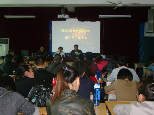 2012年2月16日下午3:00,我校在多媒体电教室隆重召开新学期德育工作会。学校常务副校长、党委副书记范晓红、学生处全体人员、专业部分管领导和全体班主任参加了大会。
